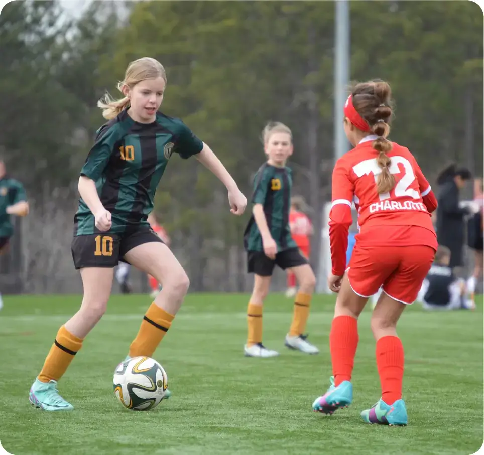 In a thrilling display of agility and control, our soccer player showed exceptional dribbling skills. She took command of the midfield with precision.