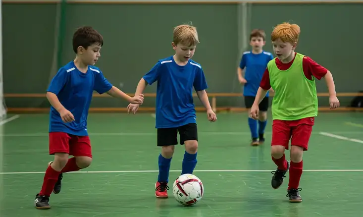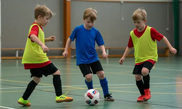 Futsal training includes fitness drills that build agility, quick footwork, and endurance improving overall fitness while reducing injury risk.