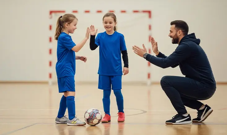 Futsal’s fast pace can feel overwhelming for young players at first. Emotional support matters just as much as skill development.