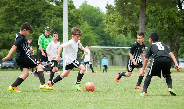 Each team has 6 outfield players and a goalkeeper, with unlimited substitutions. For younger leagues, there’s no heading, and the offside rule may be simplified or skipped.