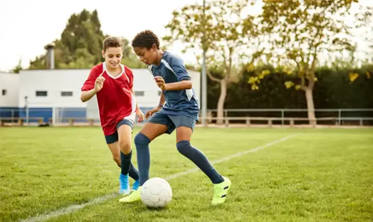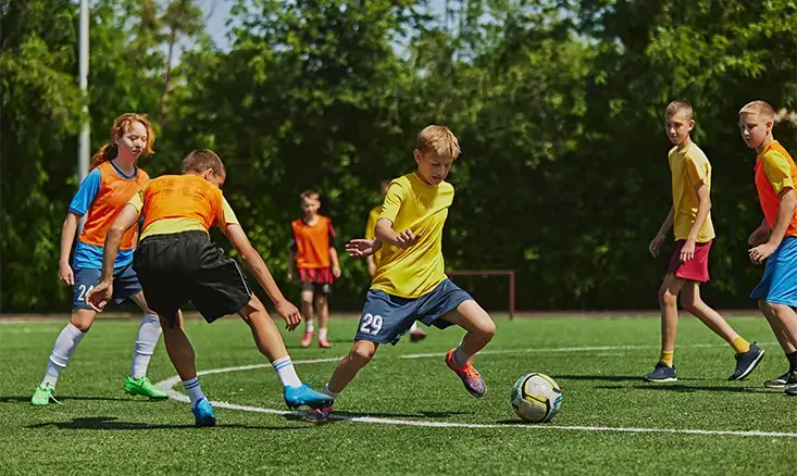Dribbling helps players move with the ball while keeping it close. The key to dribbling control is small, controlled touches.