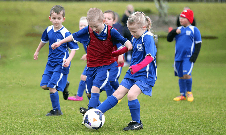 In youth soccer, once a team scores, the other team gets to restart the game with a kickoff after a goal. This rule is the same at all levels of soccer, from professional leagues to youth games.
